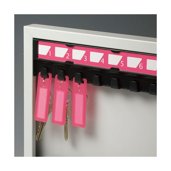 キーボックスの扉は施錠できます。(鍵2個付) 文字が書きこめる4色のキーホルダー付で色分けなど管理に最適 壁掛け用のネジ4個付で、壁面への固定が可能です。 持ち運びに便利な取っ手が付いております。