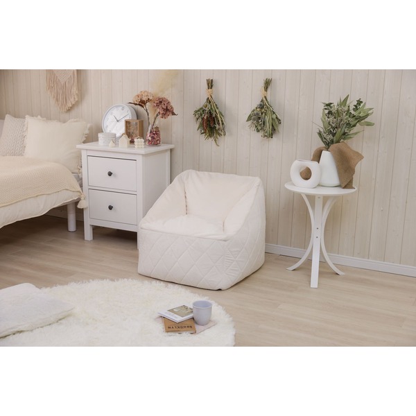 3mmビーズがしっかり身体を包む込みます。ダイヤキルト仕様のエレガントな仕上げ、肘があるのでゆっくりとくつろげます。