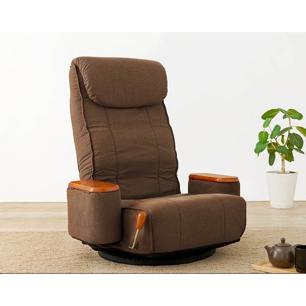 肘付き回転座椅子 360°回転式 無段階リクライニング 14段階ヘッドレスト 肘収納ボックス付 完成品 代引不可