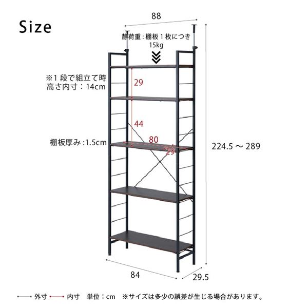 棚板の高さは12段階に調節可能。(約15cm間隔)