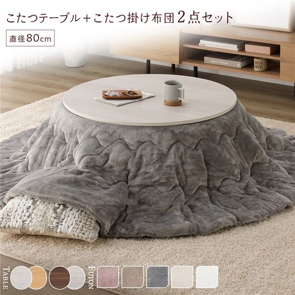 こたつ セット 2点セット 円形 直径80cm こたつテーブル :/ナチュラル + 直径190cm 掛け布団 :グレー 組立品 代引不可