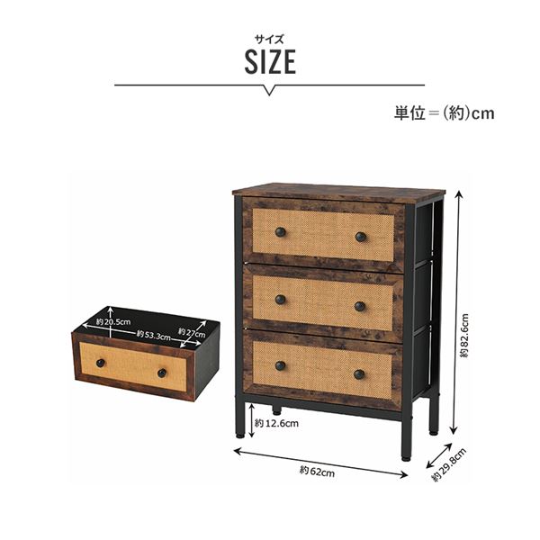 RFC-503 ラタンフェイスチェスト 3段タイプ 組立品