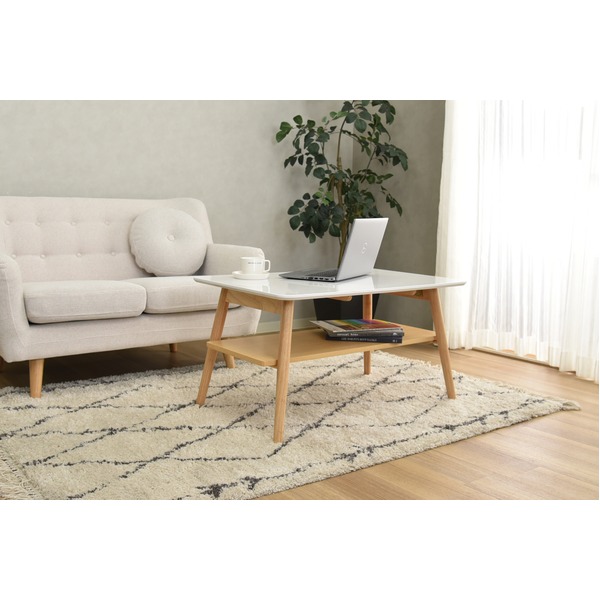 ローテーブル 折りたたみテーブル 棚付き ハイグロス天板 木製脚 センターテーブル WH 完成品 代引不可