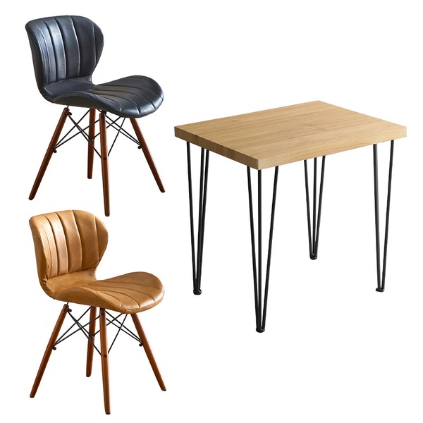 レザー調ダイニングチェア2脚と75cm幅ヴィンテージテーブルの3点セット!