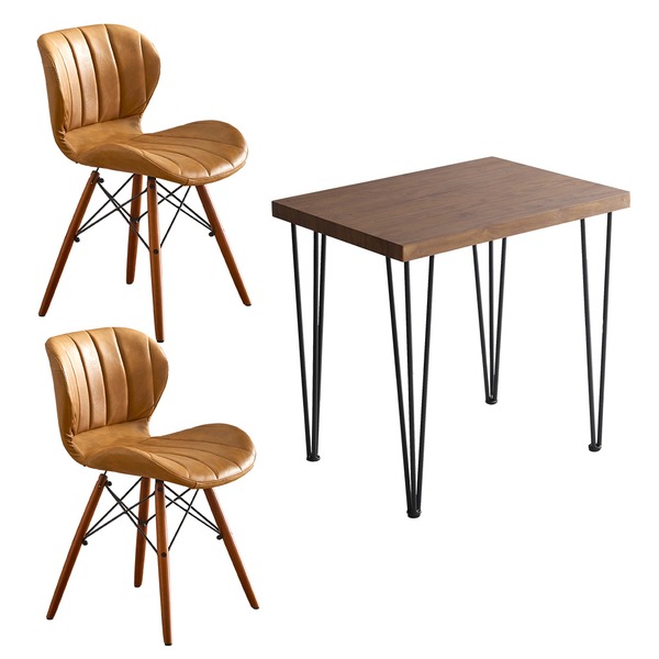 レザー調ダイニングチェア2脚と75cm幅ヴィンテージテーブルの3点セット!
