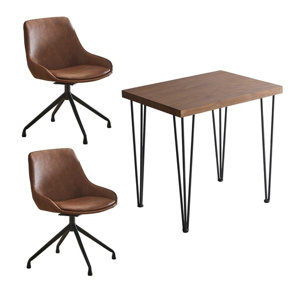 ダイニングテーブル チェア 3点組 ウォールナット ファブリック ダイニングチェア 2脚 組立品 代引不可