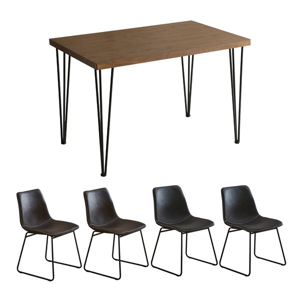 チェア テーブル 5点セット テーブル:ウォールナット スクエアチェア4 ダークグレー 組立品 代引不可