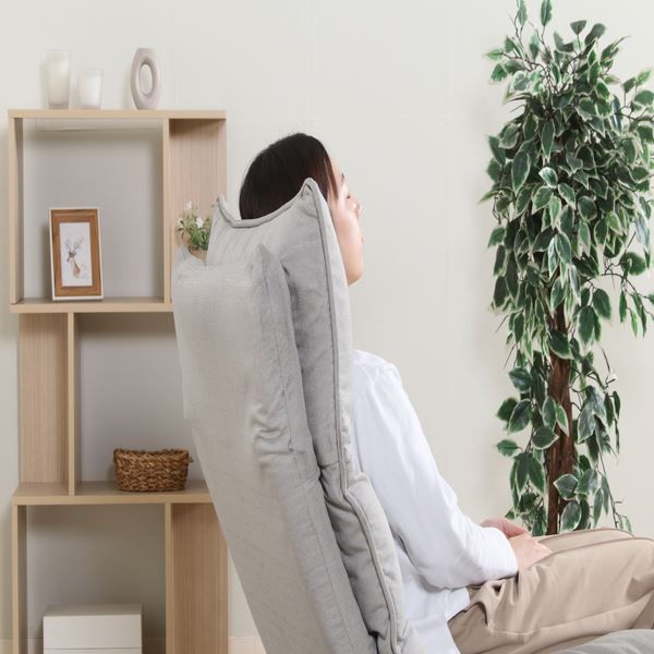 ヘッドも細やかな角度調整が可能。頭にフィットするヘッドレストや、フラットにして背もたれとしても使えます。