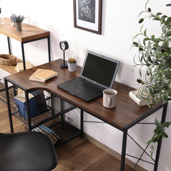 作業が捗るL字型天板はPCデスクとしても、勉強や作業をするのにも快適です。