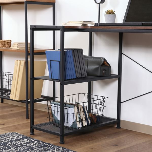 収納ラックは天板の左右どちらでも設置できるので、お部屋に合わせてご使用いただけます。