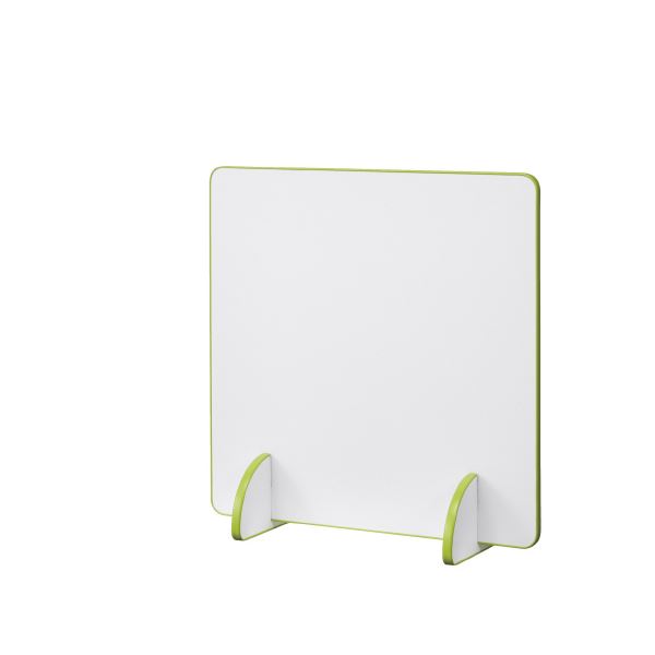 間伐材85%以上使用の環境配慮型紙資材リジッドペーパーボードを使ったキッズパーティション/四角。エッジカラーはライトグリーン。脚を差し込むだけで組立完了。軽量なので持ち運びもらくらくです。
