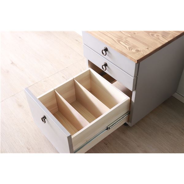 デスクと併用して使いたい、3杯引き出し付き。3段目最下段にはスペースを区切れる仕切り板付き