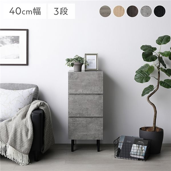 チェスト スリム 3段 ストーン 大容量 引き出し収納 スチール脚 脚付き 全段スライドレール付 リビング 収納棚