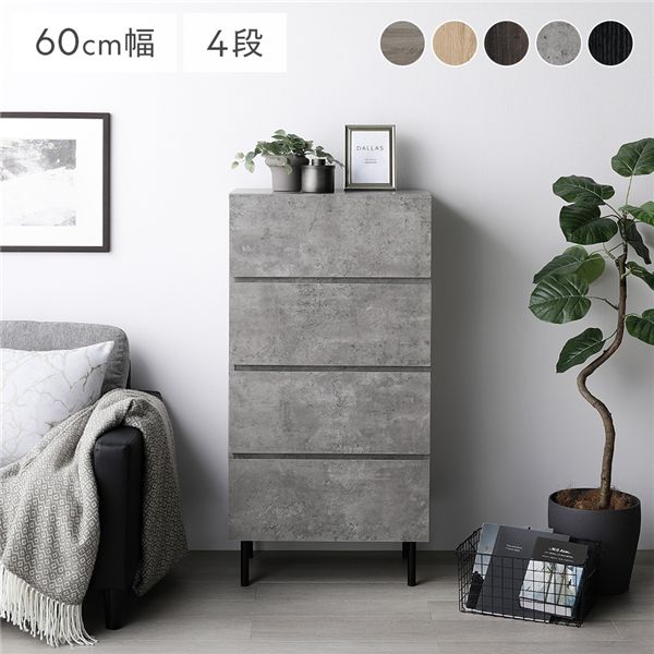 チェスト ワイド 4段 ストーン 大容量 引き出し収納 スチール脚 脚付き 全段スライドレール付 リビング 収納棚