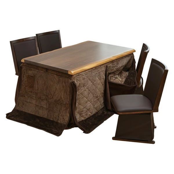 【6点セット】ウォールナット突板 ハイコタツ約幅135cm/回転式チェアー4脚:ブラウン/掛布団:ブラウンの商品ページです。