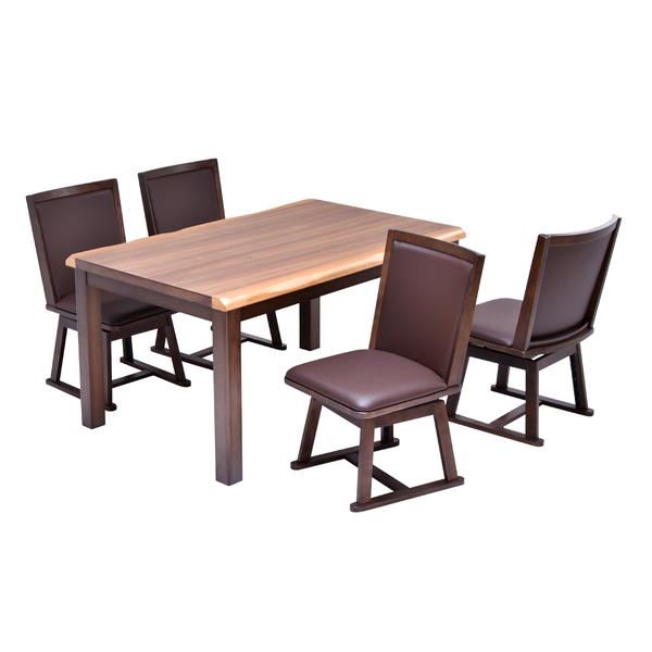 【5点セット】ウォールナット突板 ハイコタツ約幅135cm/回転式チェアー4脚:ブラウンの商品ページです。