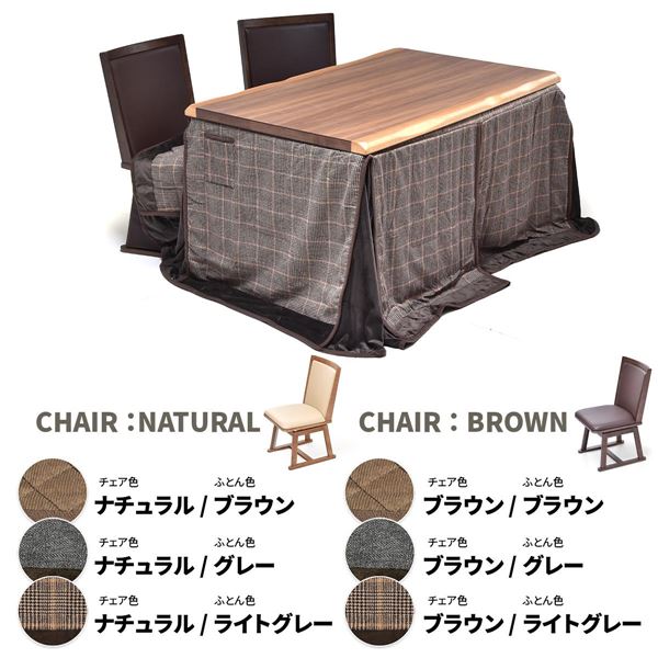 【4点セット】ウォールナット突板 ハイコタツ約幅135cm/回転式チェアー2脚:ブラウン/掛布団:ライトグレーの商品ページです。