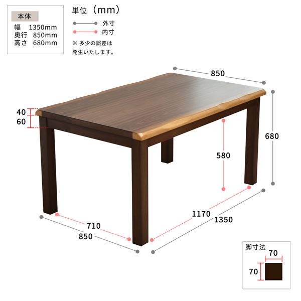 ●こたつ 商品サイズ(約):幅1350×奥行850×高さ680mm