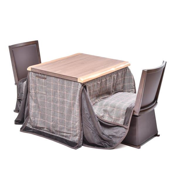 【4点セット】ウォールナット突板 ハイコタツ約幅90×奥行75cm/回転式チェアー2脚:ブラウン/掛布団:ライトグレーの商品ページです。