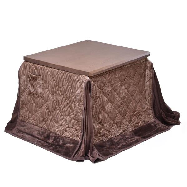 【2点セット】栓柄転写 ハイコタツ約幅90×奥行75cm ブラウン/掛布団:ブラウンの商品ページです。