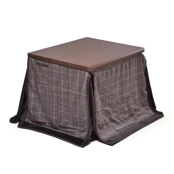 【2点セット】栓柄転写 ハイコタツ約幅90×奥行75cm ブラウン/掛布団:ライトグレーの商品ページです。