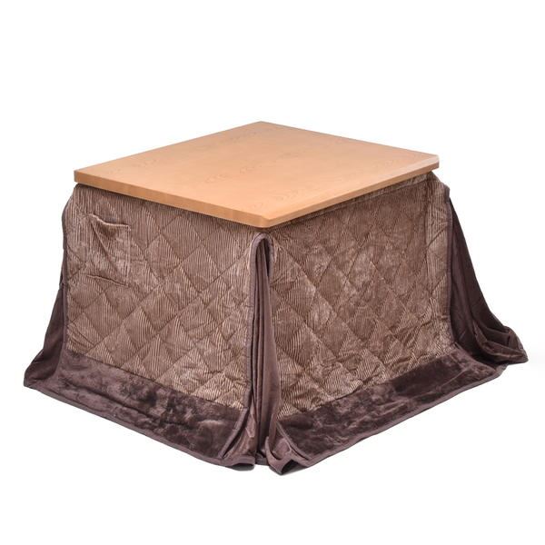 【2点セット】栓柄転写 ハイコタツ約幅90×奥行75cm ナチュラル/掛布団:ブラウンの商品ページです。