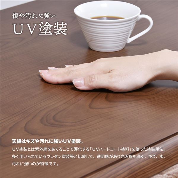 シンプルで落ち着きのある「栓(セン)」柄シートを使用し、シンプルで飽きの来ないデザインです。天板の角はアールを施して丸みのあるデザインになっているので、触り心地もいいです。どこか懐かしく落ち着いた木目と、色は「ブラウン」と「ナチュラル」の2色展開で、両方ともシンプルで落ち着いた色なので、お部屋にマッチしやすいです。高さは65cmと68cmの2段階調整ができ、お好みの高さでご使用いただけます。ヒーター部分は安心な日本メーカーのメトロ電気工業の製品が使用されており、手元で温度調節ができるコントローラー付いていて便利です。ハイタイプのコタツなので、布団を外せばコタツを使わない季節でも普通のダイニングテーブルとしても使えるので、一年通して使えるコタツ兼ダイニングテーブルとして人気です。天板塗装には耐久性の高いUV塗装を施しているので、高品質なので長くお使い頂けます。コタツはブラウンとナチュラルの2色から選べて、掛布団も2種類の中か選べて選択肢もたくさんあるので、お好みの組み合わせが見つかります。こたつはエアコンと比較すると、約3分1の電気代で済むと言われており昨今の高騰する電気代の節約にも優れています。