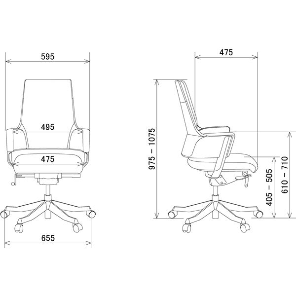 座面は幅のゆったりとしたサイズ設計です。男女問わず快適にご使用いただけます。キャスターベースは高級感のあるアルミポリッシュ仕様です。