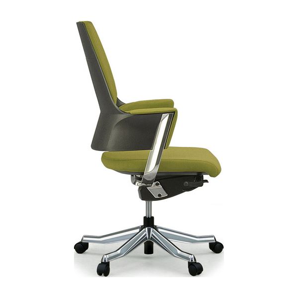 座面は幅のゆったりとしたサイズ設計です。男女問わず快適にご使用いただけます。キャスターベースは高級感のあるアルミポリッシュ仕様です。