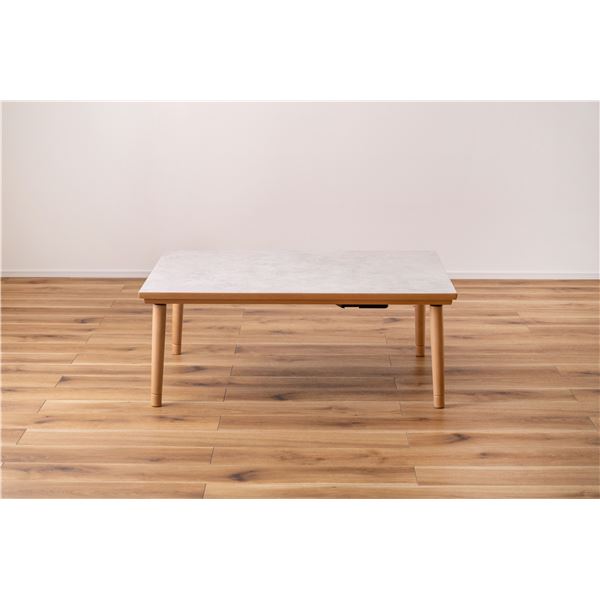 ●大理石調のストーン柄の天板とナチュラルな木目の組み合わせたフラットヒーターコタツ。