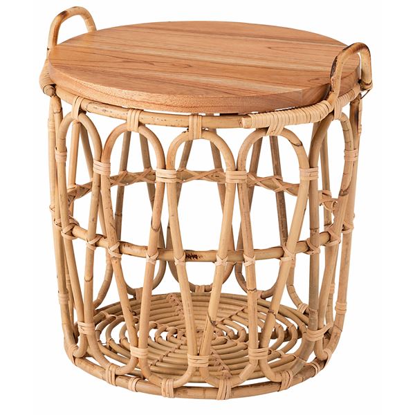 サイドテーブル 天然木 ミンディ ラタン バスケットテーブル リビング インテリア家具 完成品