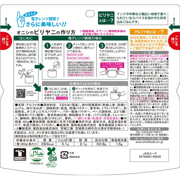 ■商品名:80gオニシのビリヤニ