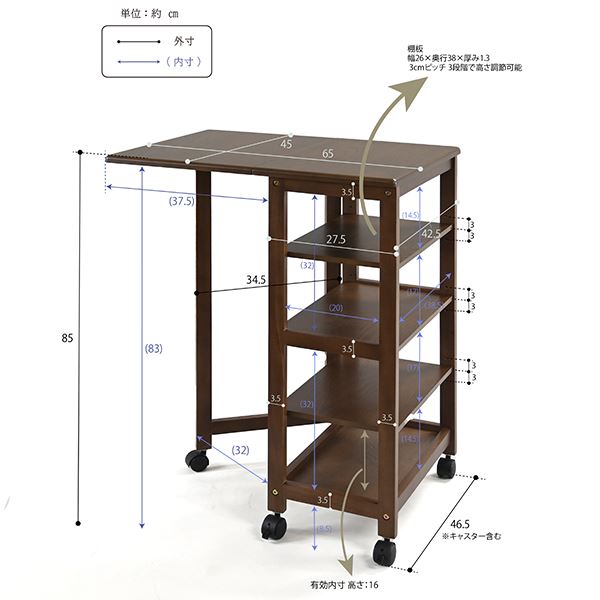 ●天板を折りたんだ時のサイズ(約):幅32×奥行45×高さ85です。
