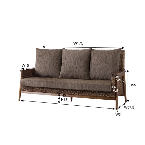 3人掛け:幅164×奥行75×高さ53cm(座面高:17cm)