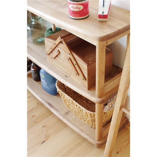 バーチ材天然木を使用したコンパクトなシェルフです。角のない優しい丸みを帯びた形状が特徴です。