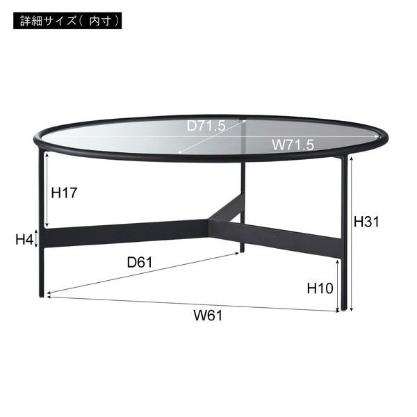 ローテーブル センターテーブル 約幅75 奥行75 高さ33cm アイアン 強化ガラス ラウンド ガラステーブル リビング