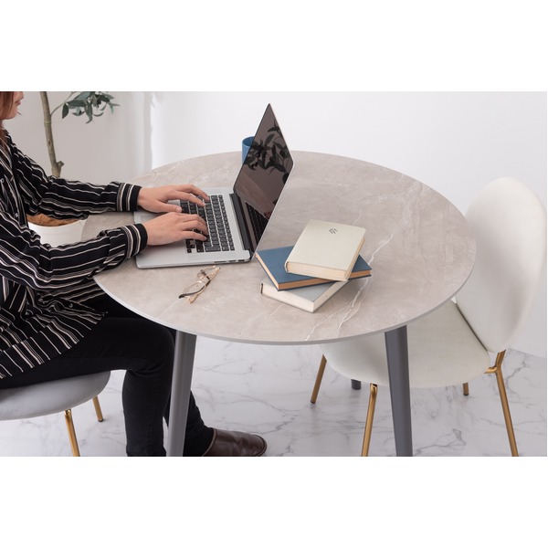 人気のコンパクトテーブルにトレンドの大理石調のデザインが登場。ストーン柄の天板は物を鮮やかに見せる効果があり、テーブルの上の料理や小物が引き立つデザインです。