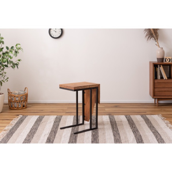 サイドテーブル 約 木製 天然木 チーク スチール オイル仕上 リビング インテリア家具 完成品