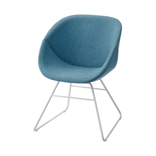 身体をすっぽり包み込むデザインのラウンジチェア。3種類の脚形状のバリエーションのうちのループ脚タイプ(ホワイト脚)。