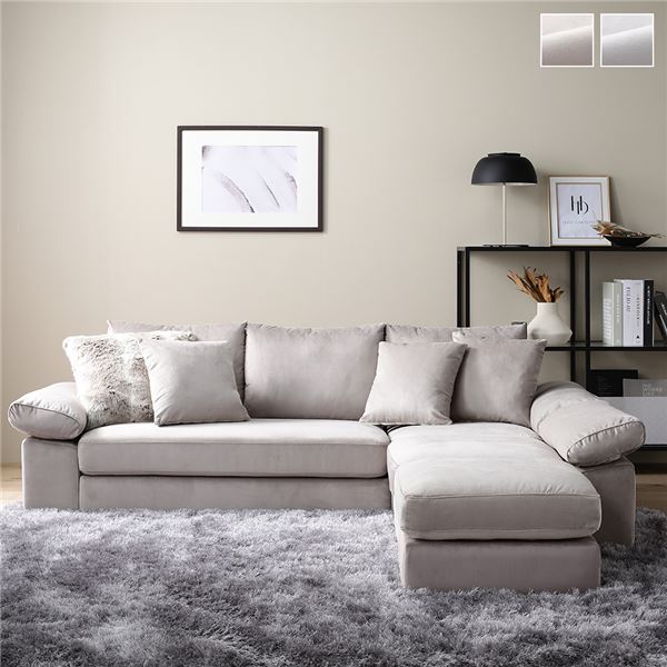 ソファ 脚なし 樹脂パーツ1cm ファブリック ミニクッション3個付き カバーリング仕様 ベルベット調 組立品