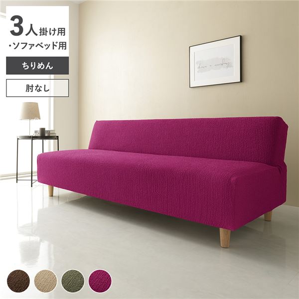 ※このページは「肘なし/3人掛け用・ソファベッド用」のちりめん生地ソファカバーの販売ページになります。