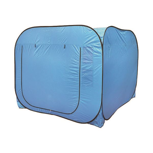 災害時にプライバシーを確保できるポップアップテント。入口と屋根はジッパー式。屋根は遮光・メッシュの二重構造。車椅子のままテント内に入れます。入口横にポケットが付いており、付属品のホワイトボードとペンで、表札の記入なども可能。