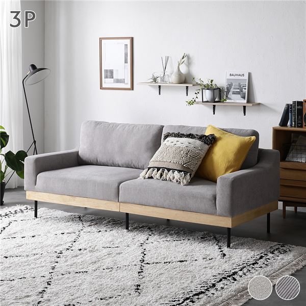 ソファ コーデュロイ 単品 肘付き カバーリング 天然木 スチール脚 3P ソファー リビング ダイニング 組立品