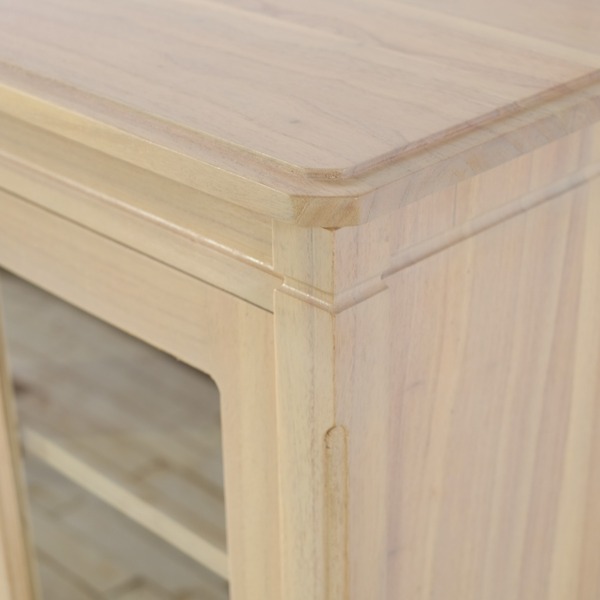 引き出し材や商品の裏側まで、すべてミンディ無垢材を使用しており、一本一本、職人さんの手作りで仕上げている、温かみのある家具です。