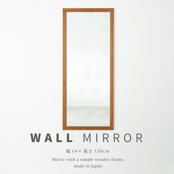 幅広枠ウォールミラー()(ハニー/茶) 天然木 姿見鏡 ワイド 高級感 木製 飛散防止加工 壁掛け 北欧風 ヴィンテージ 韓国インテリア 玄関 トイレ 洗面 日本製 完成品 NK-36