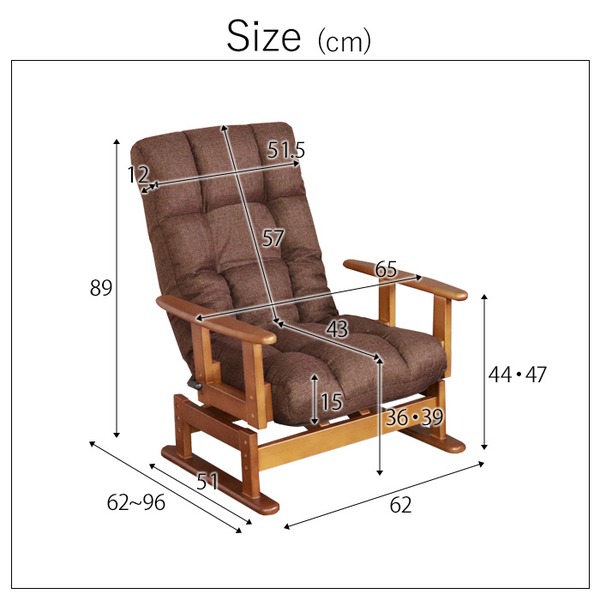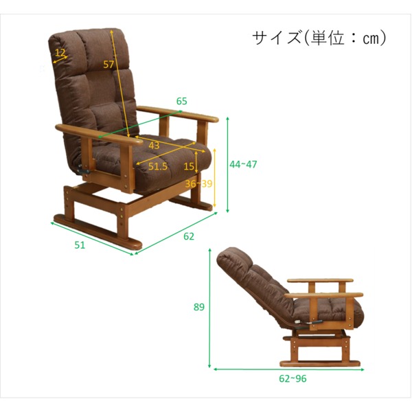 ■サイズ(約):幅65×奥行62-96×高さ89cm 座面高36/39cm