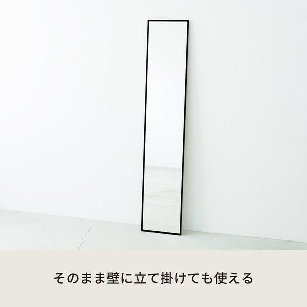 細枠ウォールミラー (/黒) 天然木 姿見鏡 スリム 高級感 木製 飛散防止加工 壁掛け 北欧風 玄関 トイレ 洗面 日本製 完成品 NK-6
