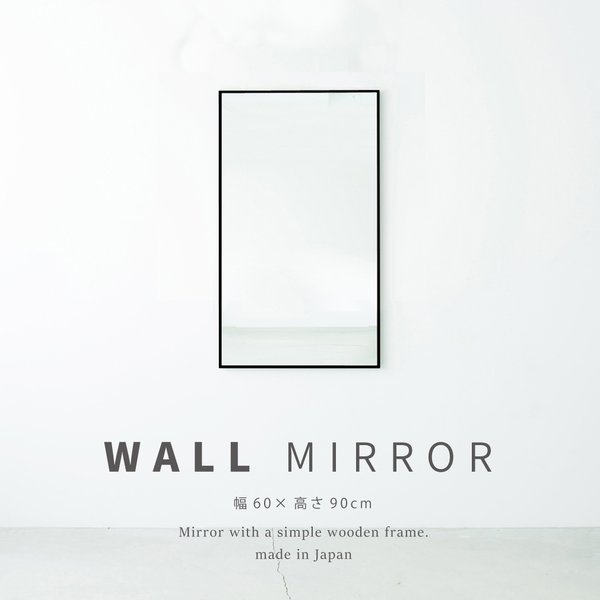 2個セット 細枠ウォールミラー()(/黒) 天然木 姿見鏡 ワイド 高級感 木製 飛散防止加工 壁掛け 北欧風 玄関 トイレ 洗面 日本製 完成品 業務用 NK-26
