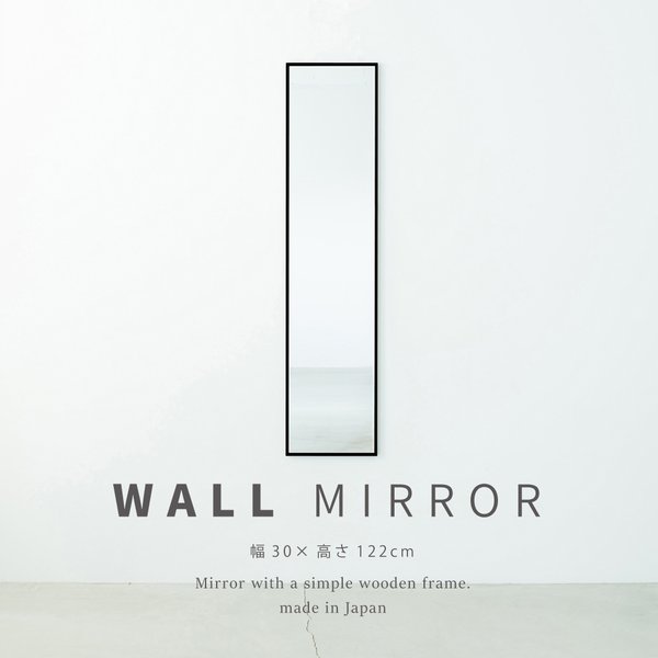 細枠ウォールミラー()(/黒) 天然木 姿見鏡 スリム 高級感 木製 飛散防止加工 壁掛け 北欧風 玄関 トイレ 洗面 日本製 完成品 NK-40