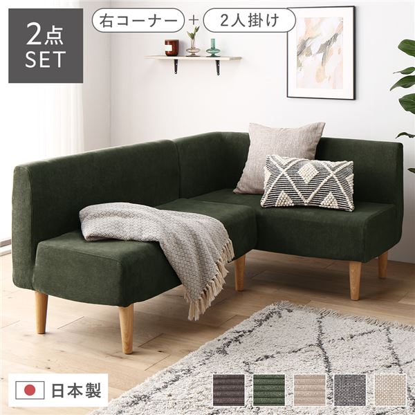 日本製 ダイニングソファ 2点セット 右コーナー+ ナチュラル脚 ポケットコイル 代引不可